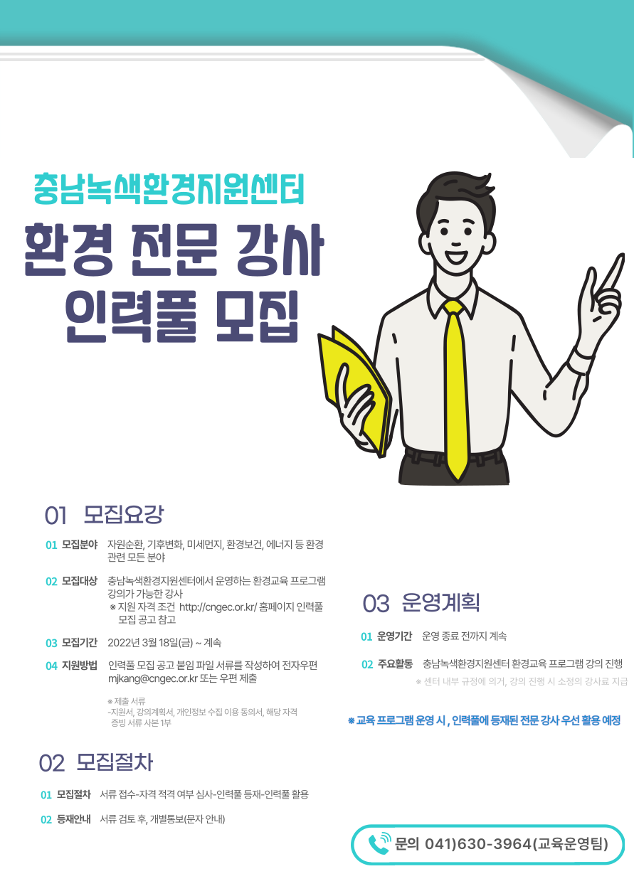 - [충남녹색환경지원센터] 충남녹색환경지원센터 환경 전문 강사 인력풀 모집 홍보