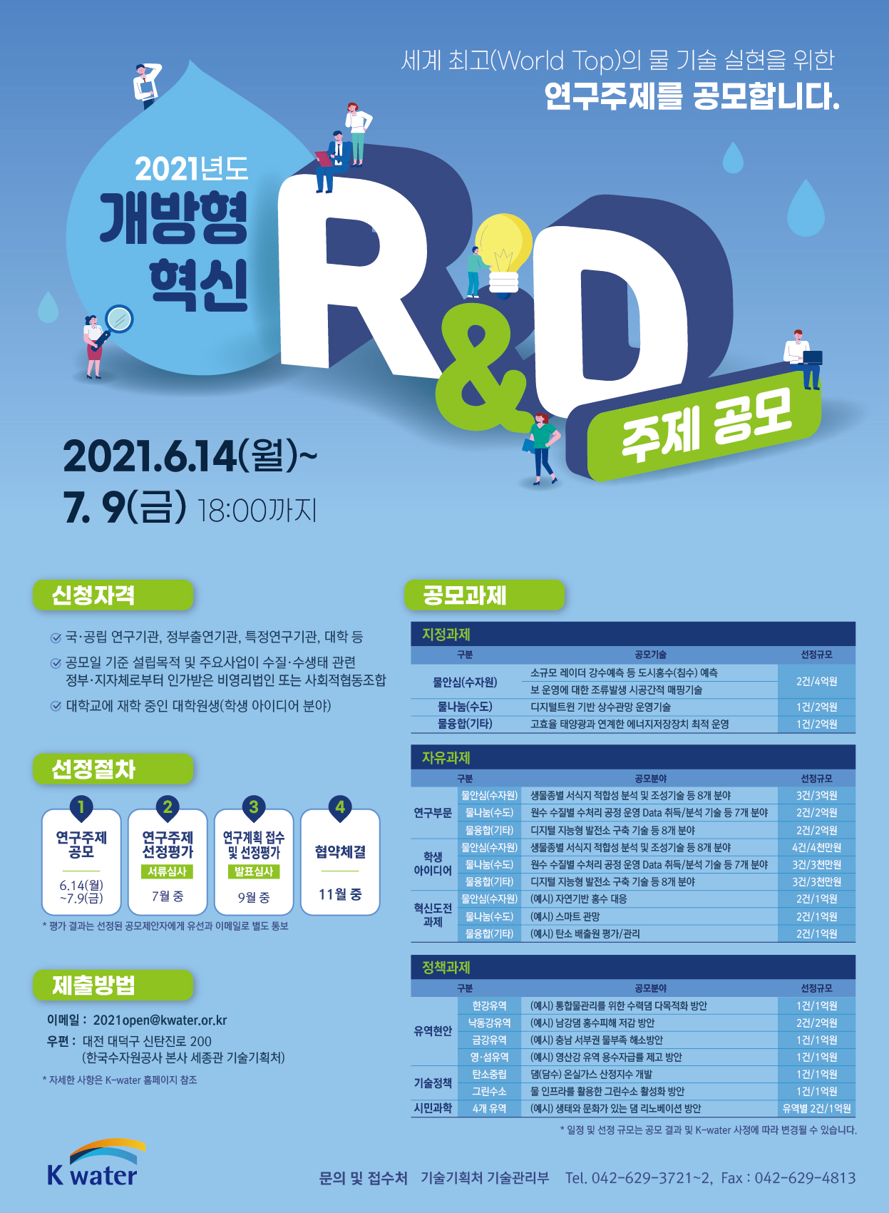 - [한국수자원공사] 2021년 K-water 개방형 혁신 R&D 공모 안내