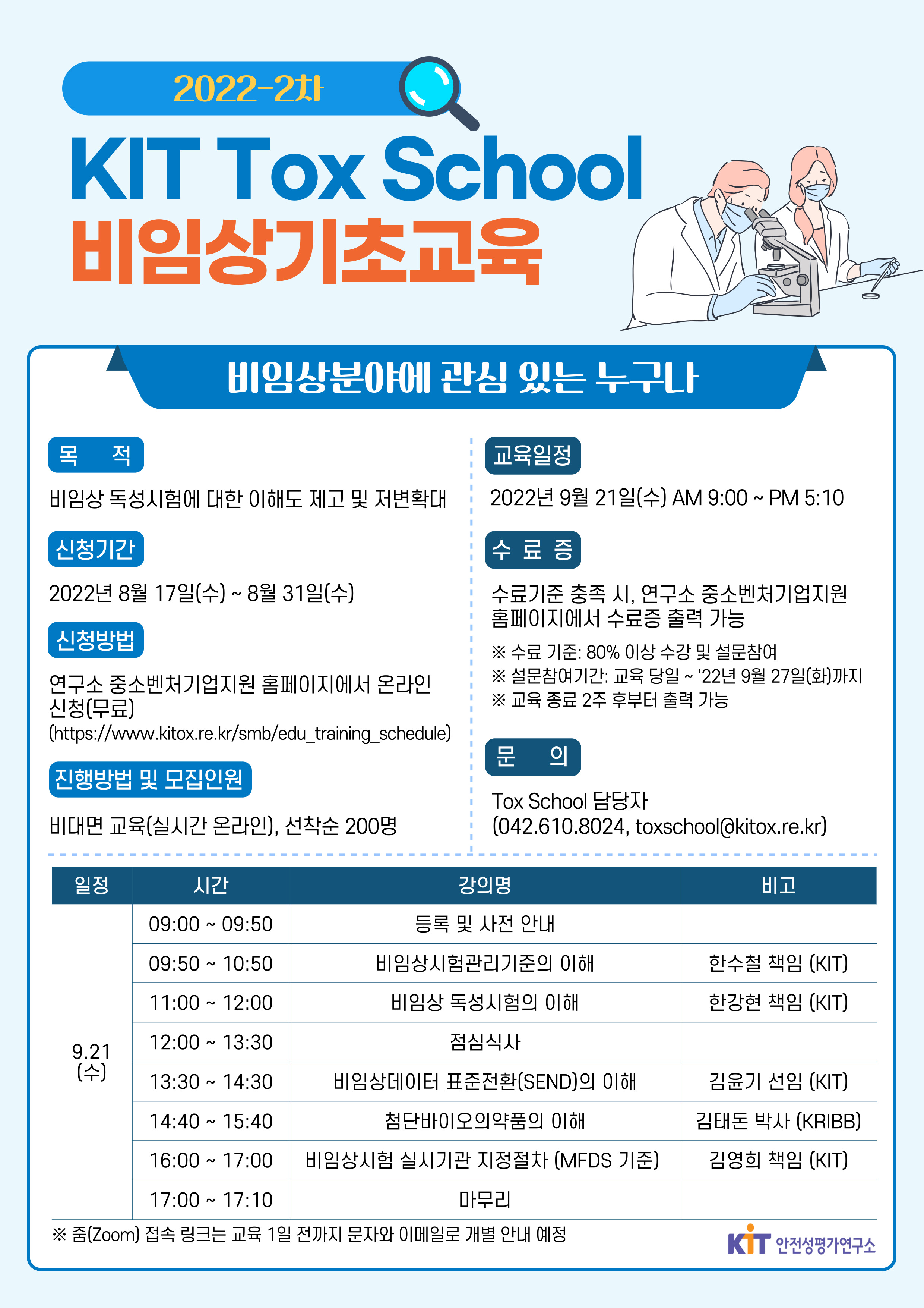 - [안정성평가연구소] 2022-2차 『KIT Tox School』 비임상 기초교육 개최 안내